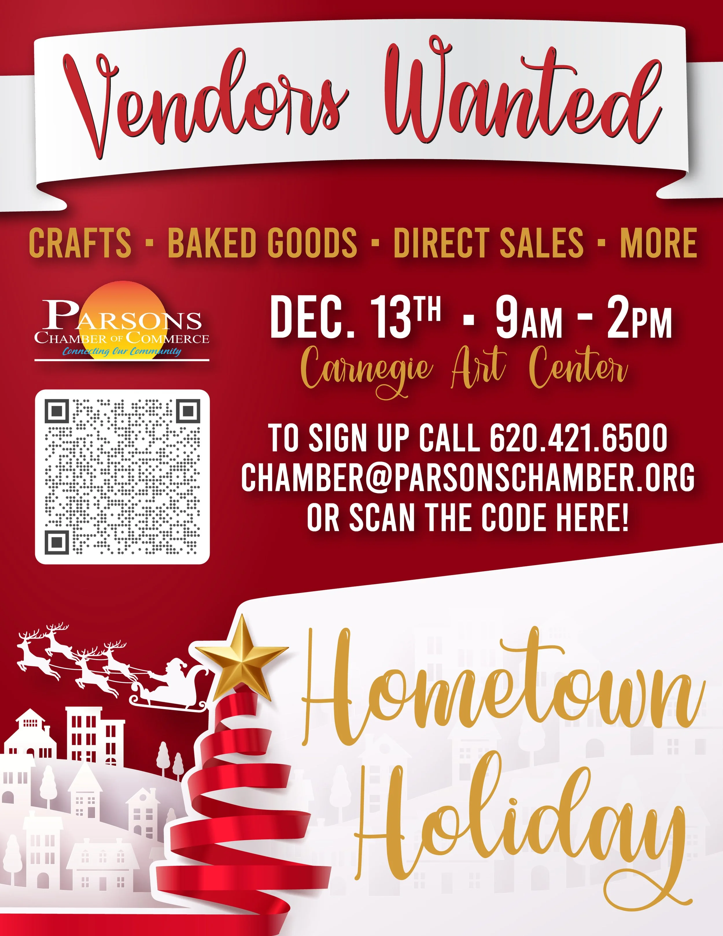 Dusk: Downtown Parsons holiday lights! Made possible by Point of Pride, Parsons Area Community Foundation, the City of Parsons, and other local groups.