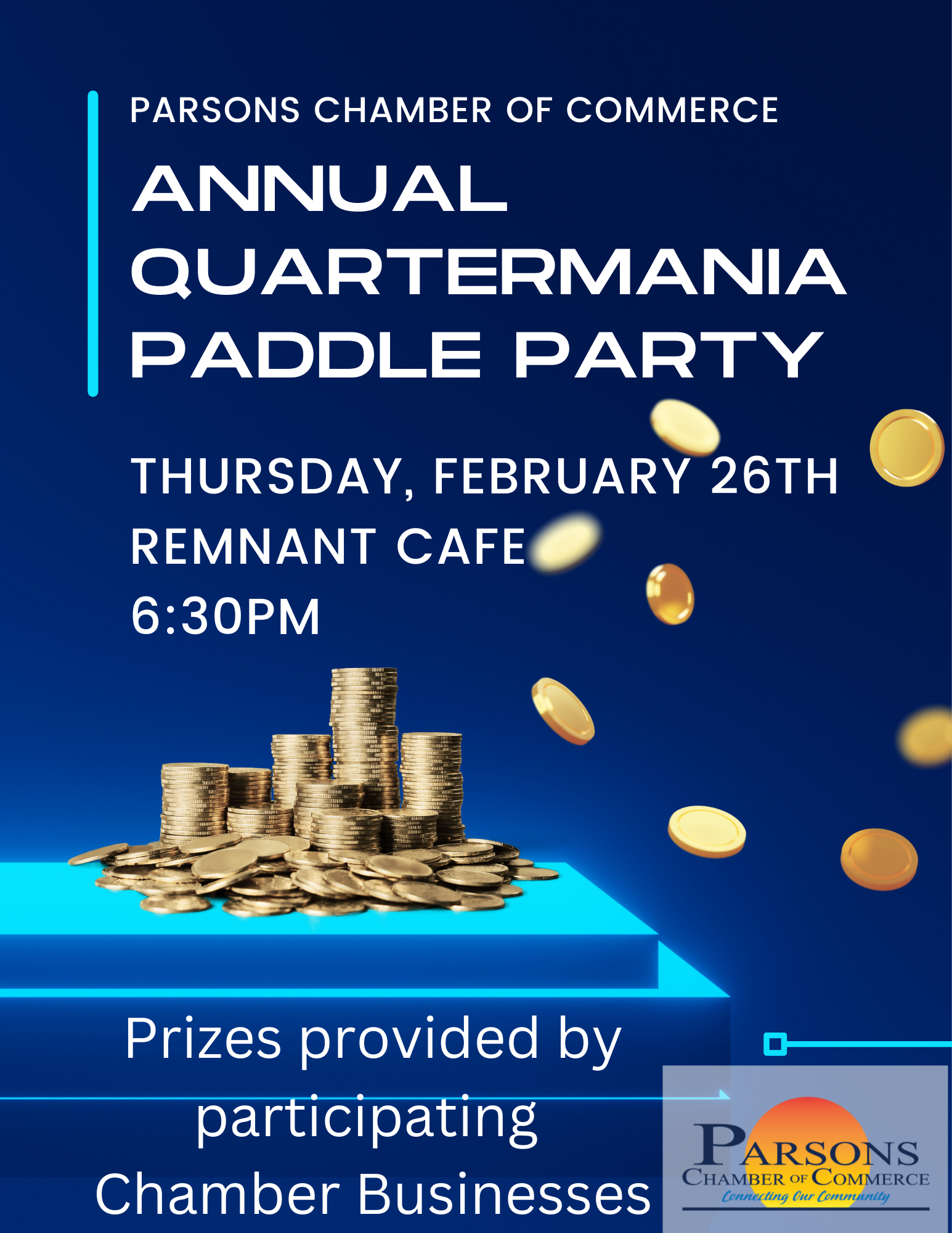 Bring your friends for a fun live auction of prizes from participating Chamber Members. Purchase your bidding paddle for only $5 each at the door. Bring your own quarters or buy some of the provided rolls. Prizes $25 & under will only require one quarter buy in, prizes $26 to $50 will require 2 quarters, and over $50 will have a three quarter buy in.